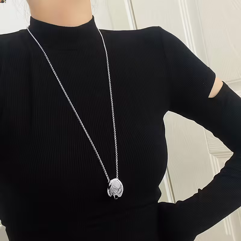 Its elongated silhouette makes it perfect as a sweater chain, creating a flattering and stylish statement for any season.